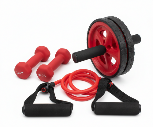 The exercise wheel helps build a strong core and improve balance, the dumbbells support muscle toning and strength training, and the resistance band adds flexibility and progressive resistance to your workouts. Ideal for beginners and fitness enthusiasts alike, this all-in-one set is perfect for home gyms, small spaces, and on-the-go training.