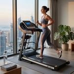 Upgrade your home workouts with our 3.5HP treadmill, now with a built-in massager. Supports up to 120kgs, featuring a spacious 121x42 cm walking area and speeds from 1-14km/h. Equipped with MP3, Bluetooth, an auto oil system, and a massager for added relaxation. Ideal for fitness enthusiasts seeking both performance and comfort. No incline.