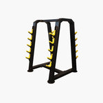 The Barbell Rack Stand | MF-0692 is a heavy-duty, adjustable power rack that is perfect for home gyms and commercial fitness centers. It is made of 100 x 50 x 3 mm profile tubes with high-quality two-layer powder coating, making it durable and long-lasting. The rack features adjustable height and width, so you can customize it to fit your needs. It also includes safety spotter bars to help prevent injuries, and 10 yellow plastic fingerboard supports to protect the body of the stand from chips and scratches.