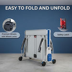 The foldable, space-saving design allows for quick setup and easy storage, making it perfect for home gardens, patios, balconies, schools, and sports clubs. Built-in smooth-rolling wheels ensure effortless mobility, while locking mechanisms keep the table stable and secure during intense rallies.