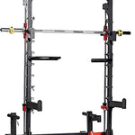 Transform the squat rack into a bench rack, or incorporate resistance bands to enhance exercises such as bench presses, pullovers, rows, extensions, and curls. This makes it a multi-functional strength training solution for the entire body.