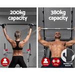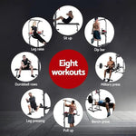 - [8-in-1 Multi Gym Station]This multi-station gym bench offers a range of exercises such as bench press, chin up, dip, pull-up, military press, sit up, leg raise, and leg pressing, dumbbell rows. Also, you may also adjust the pull-up bar height from 199cm to 224cm. (Note: Barbell, dumbbell and weights are not included.)