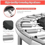 - Equipped with rust-resistant heavy-duty steel frame, closely weaved oval PP jumping mat, 2 PVC safe pad covers, 40 stainless steel springs, 8 reinforced foot pipes and foam covered handle, offers a much safer environment for you.(Max 220lbs)