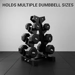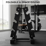 The foldable, space-saving design allows you to quickly collapse the stand for convenient storage—perfect for small rooms, apartments, or home gyms. Rubber inserts protect both your dumbbells and floor from scratches, while rubber end caps prevent damage and add extra safety.