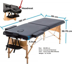 Portable Massage Bed Table Spa Bed Black Color, 60X180Cm, Adjustable Height(60-80Cm). Free Carry Case, Extra Neck Rest, Free Arm Rest.