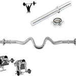 The Marshal Fitness Super EZ Curl Bar 47 inc. Threaded Solid Chrome Curl Bar provides strength and style to your weight training workouts with its solid steel construction and attractive chrome finish. It fits standard plates with 1-inch holes, and has star-lock collars to hold them securely. Additional Information: Solid steel construction; chrome finish Fits standard plates with 1-inch holes Threaded ends; star-lock collars hold plates securely. Solid steel with chrome finish. Fits standard plates with 1-inch holes. Threaded ends with star-lock collars. Dimensions: 2.75 diam. x 47L inches; Weight: 13 lbs.